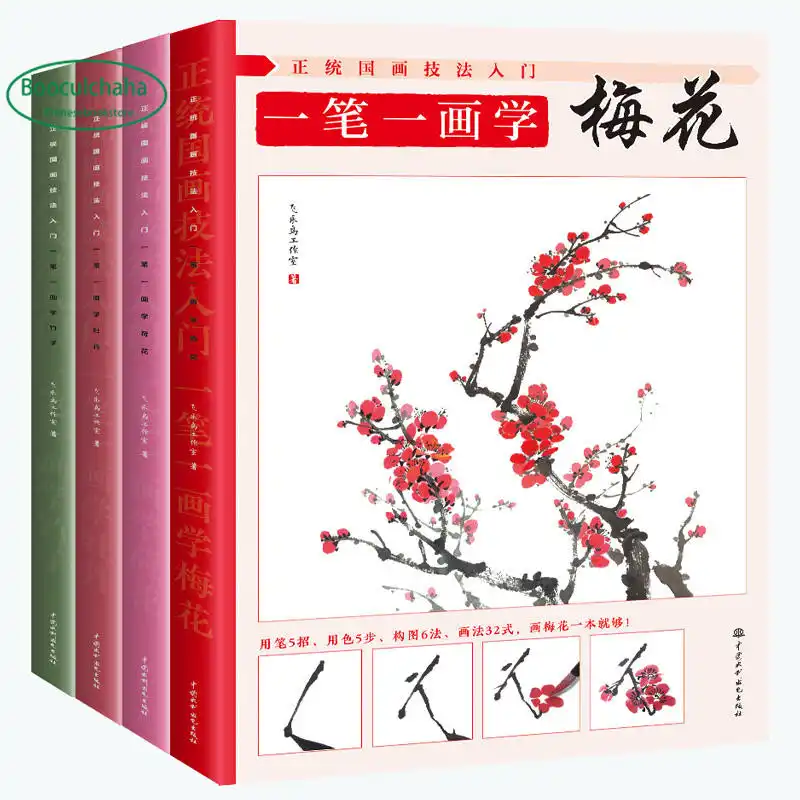 Image Of 256 Pages Set Chinese Traditional Freehand Chinese Painting Introduction Course Book Plum Peony Lotus Bamboo Drawing Books