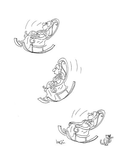 Image Of Three Drawings Of Old Lady Rocking In Rocking Chair As Cat Gets Nauseous Cartoon Premium Giclee Print By Arnie Levin Art Com