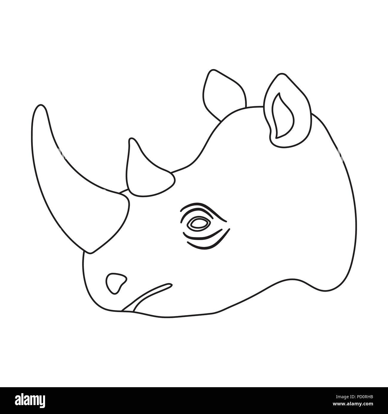Image Of Rhinoceros Icon In Outline Design Isolated On White