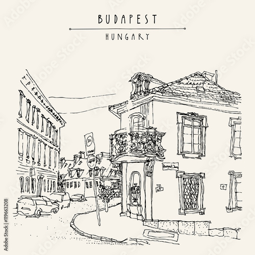 Image Of Street Corner In Budapest City Hungary Eastern Europe Colored Architecture Drawing Travel Sketc Art Print By Babayuka Art Com