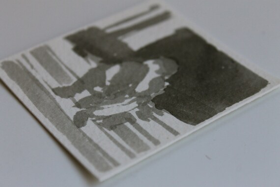Image Of Original Miniature Ink Drawing Man On A Street Corner