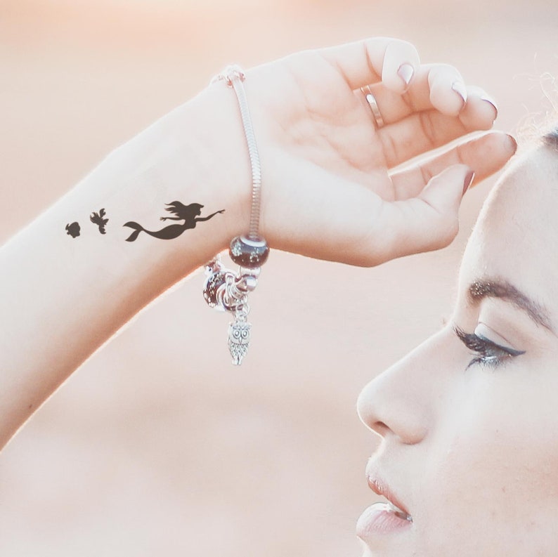Image Of Disney Temporary Tattoo Little Mermaid Ariel Children Kids Realistic Stick On Fake Tattoo Drawing Silhouette Watercolor Gifts For Her