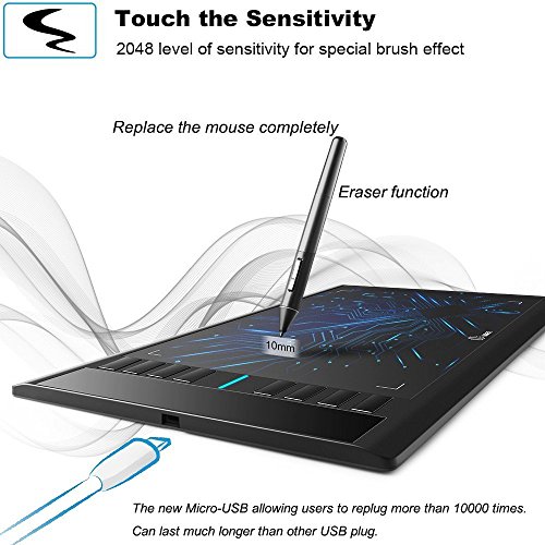 Image Of Ugee M708 Graphics Tablet 10 X 6 Inch Large Drawing Tablet 8192 Levels Pressure Battery Free Pen Stylus 8 Hotkeys Compatible With Windows 10 8 7