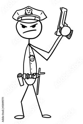 Image Of Cartoon Hand Drawing A Policeman Design Holding A Gun