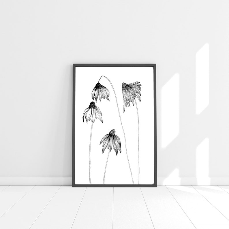 Image Of Wilted Daisies Original A5 Pen And Watercolour Pen
