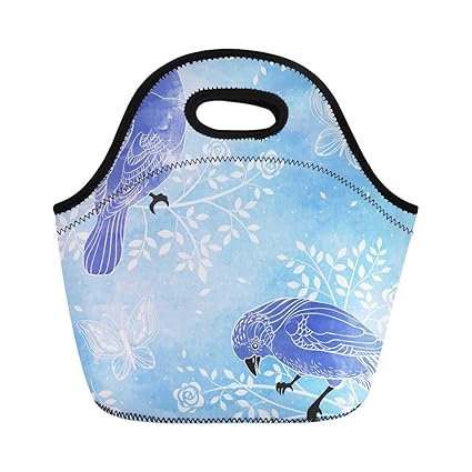 Image Of Amazon Com Semtomn Lunch Bags Blue Drawing Birds And