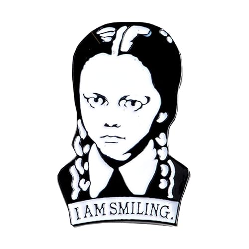 Image Of 1pcs Cartoon Wednesday Addams I Am Smiling Icons Badge On Backpack Brooch Pins For Clothes Acrylic Badges For Women Girls Gift