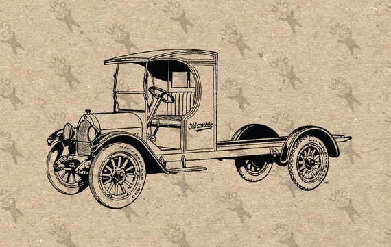 Image Of Vintage Truck Old Car Oldsmobile Drawing Digital Printable Instant Download Black And White Graphic For Iron On Transfer Burlap Fabric Etc