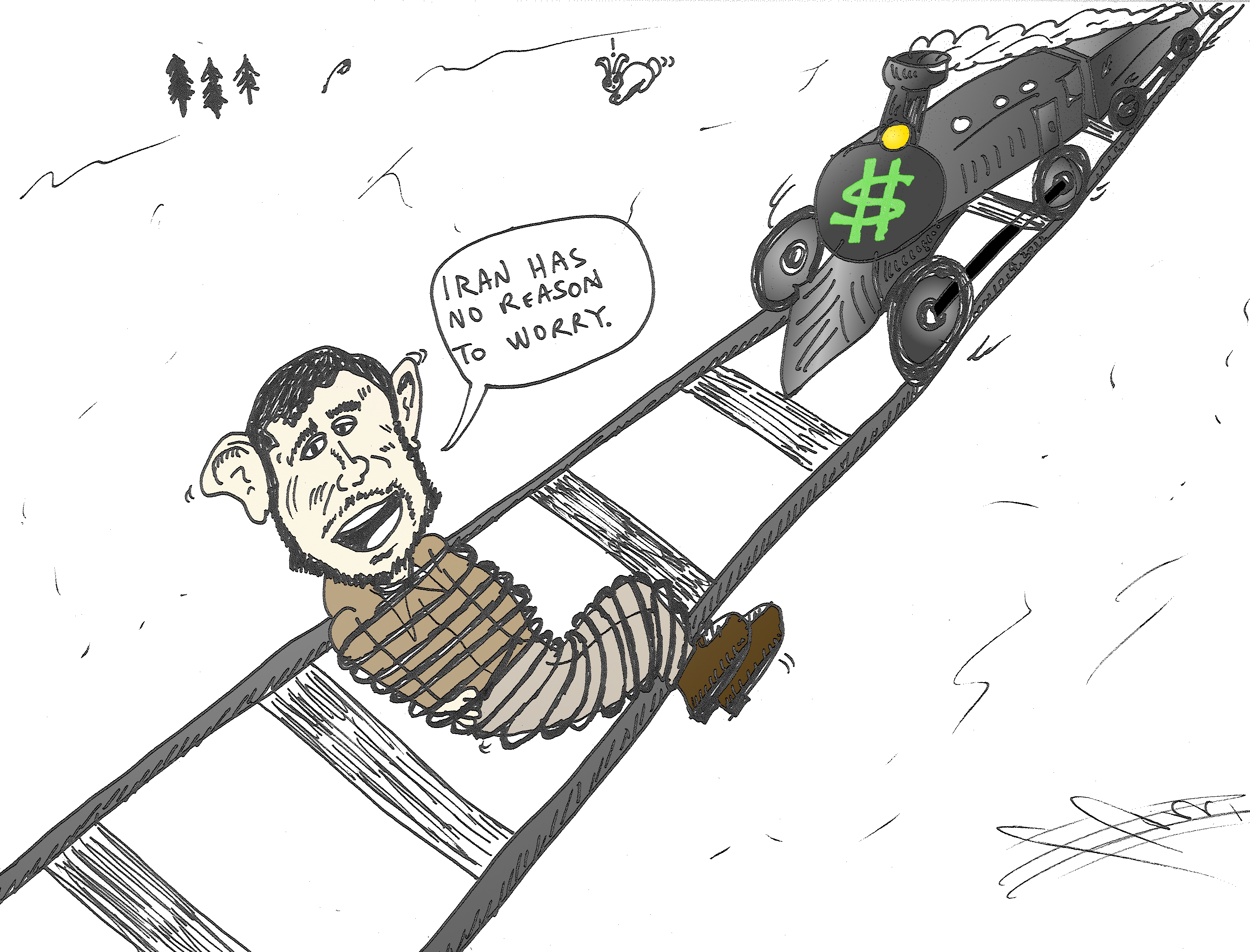 Image Of Ahmedinajad Tied To The Train Tracks Cartoon By