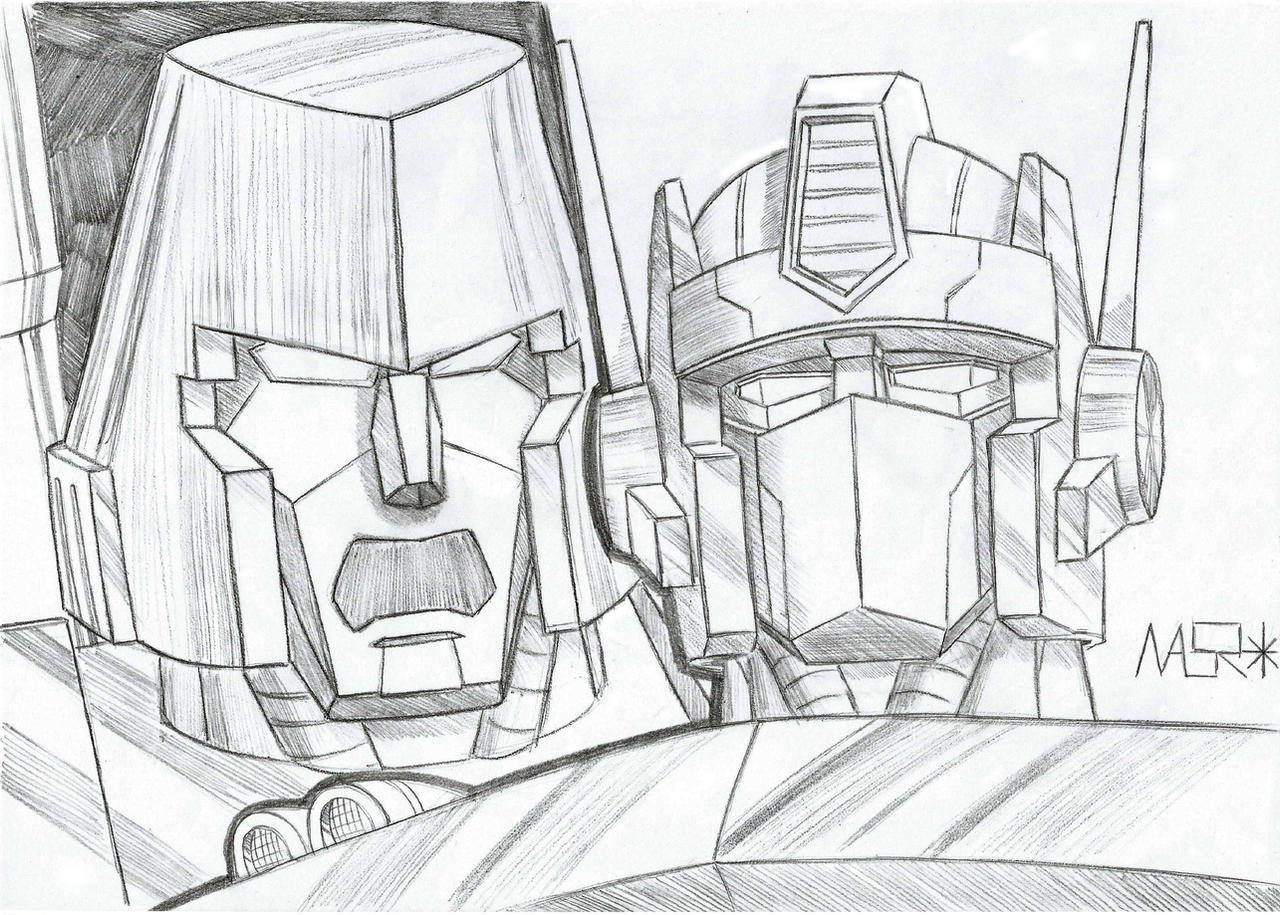 Image Of Drawing Transformers Optimus Prime Vs Megatron