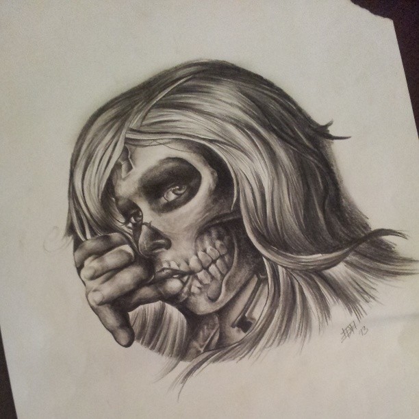 Image Of Slower Version Delia Pencil Drawing Sugar Skull Girl