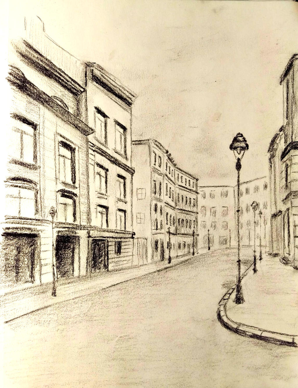 Image Of Drawing An Old Street Using Two Point Perspective Timelapse