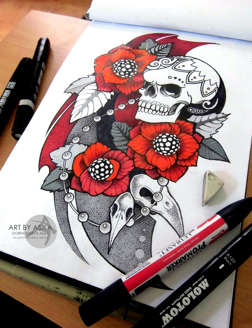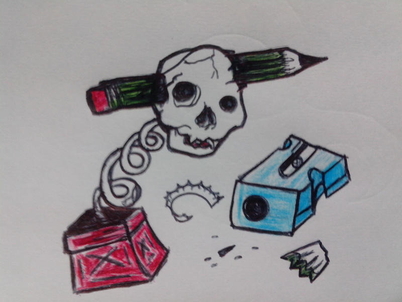 Image Of New School Tattoo Skull And Pencil By Blacknekobit On