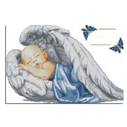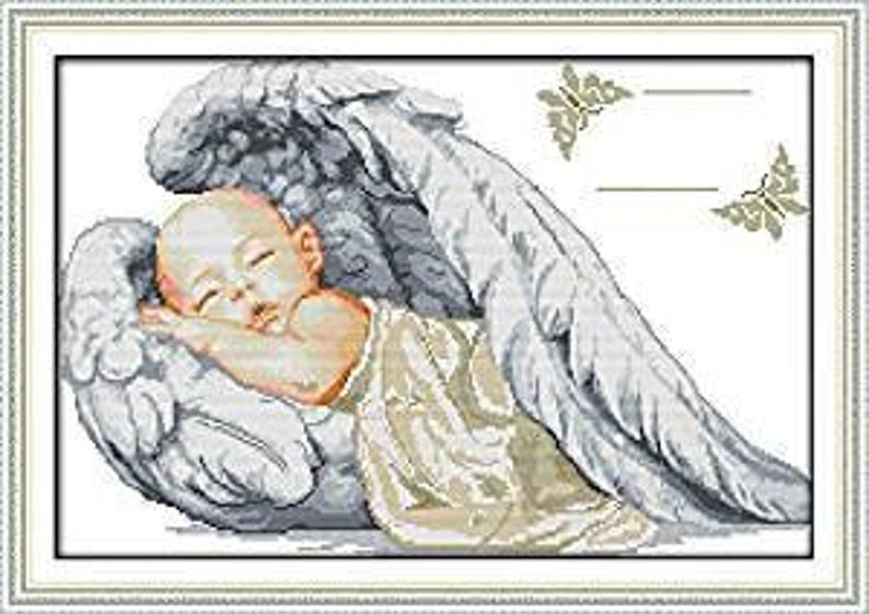 Image Of Benway Counted Cross Stitch Kit Little Sleeping Angel Birth Certificate 14 Count 51cm X 36cm