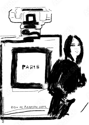 Image Of Girl With Perfume Bottle Black And White Fashion Sketch